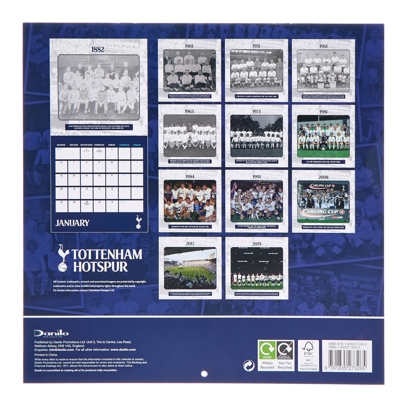 Buy Tottenham Hotspur Through The Years 2025 Square Wall Calendar for, Year 2025 a3 wall calendar.